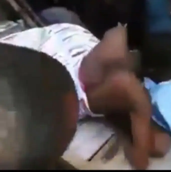 In the video making the rounds on the internet, the alleged married woman and her lover were seen unclad and stuck together while being jeered by throngs of people who had gathered to ridicule them.