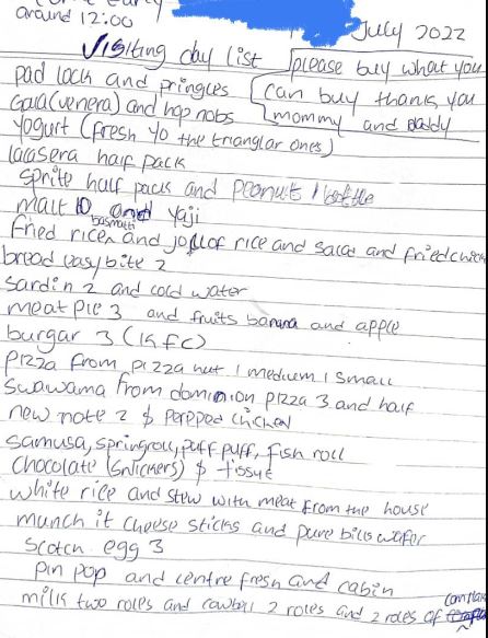 The boarding school student appeared eager to get everything he’s missed while away from home so he made sure to include everything in the list.