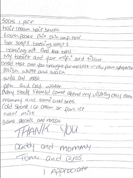 Boarding School Student Sends Long List Of Demands To His Family Ahead Of Visiting Day