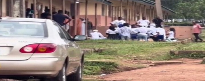 This incidence took place days after the event was banned by the school. The apprehended student were made to kneel down like secondary school students.